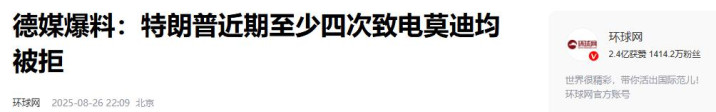 《德媒爆料:特朗普近期至少四次致电莫迪均被拒》——环球网2025-08-26 22:09